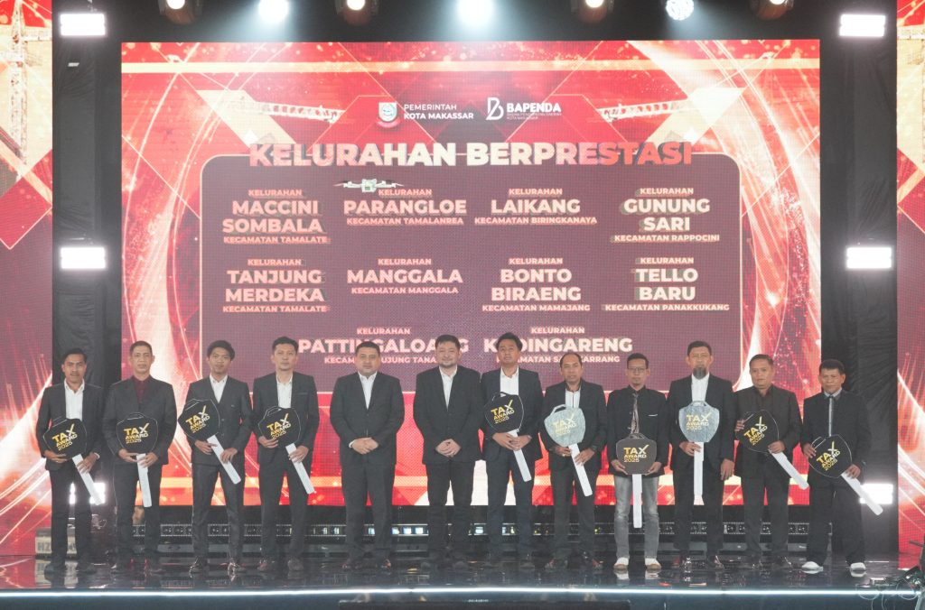 Selasa, 9 Desember 2025 Badan Pendapatan Daerah (Bapenda) Kota Makassar memberikan 36 penghargaan kepada wajib pajak, kelurahan berprestasi, serta unsur Forum Koordinasi Pimpinan Daerah (Forkopimda) pada malam puncak Tax Award 2025 di Phinisi Ballroom Hotel Claro Makassar.