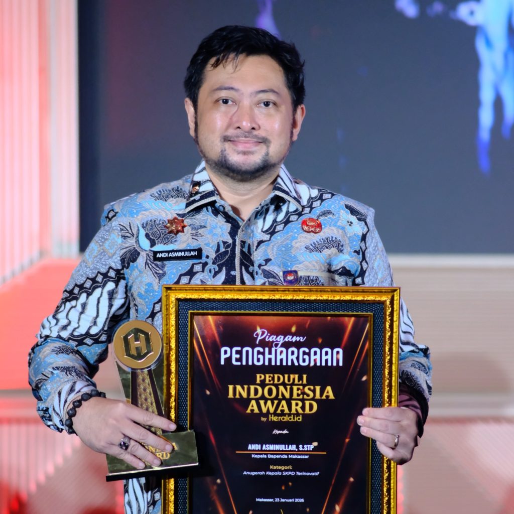 MAKASSAR – Kepala Badan Pendapatan Daerah (Bapenda) Kota Makassar, Andi Asminullah, menerima penghargaan kategori Anugerah Kepala SKPD Terinovatif pada ajang Peduli Indonesia Award yang digelar Herald.id, Jumat (23/1/2026) malam.